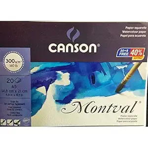Canson Acrylic Montval 300 GSM A5 Pack of 20 Fine Grain Sheets, Acry - Pack of 2